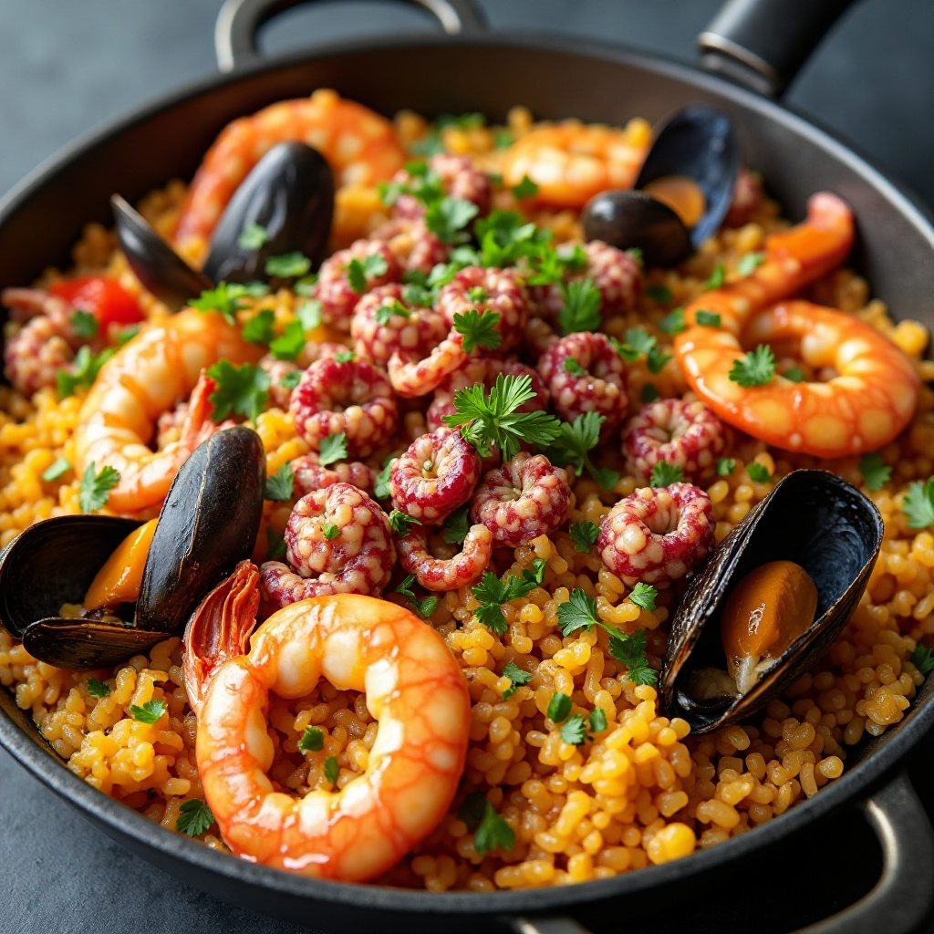 La región de Hervey Bay, conocida por sus abundantes mariscos frescos, ofrece un escenario perfecto para una paella vibrante y colorida. Esta receta celebra la riqueza marina local con ingredientes como el pulpo, el mejillón, y la gambita, típicos de la zona. La paella de mariscos es ideal para compartir en una reunión o como plato principal en cualquier ocasión.