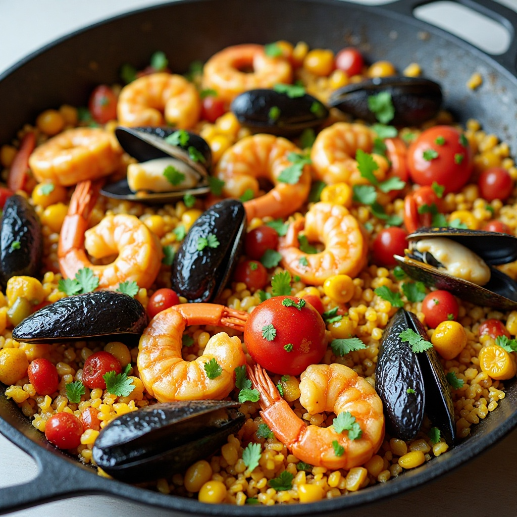 La paella de mariscos es una deliciosa y colorida receta que origina de Valencia, España, pero se ha vuelto popular en muchas partes del mundo. Esta versión se adapta a los gustos locales de Hampton, Virginia, incorporando mariscos frescos que son abundantes en la costa cercana, creando un plato lleno de sabor y tradición.