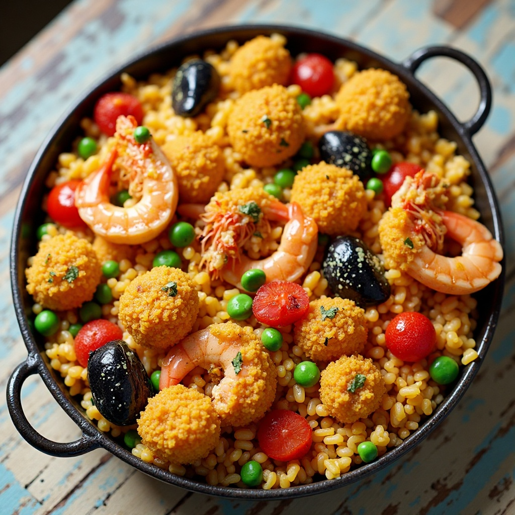 La paella ha sido adoptada como una expresión culinaria en diversas partes de España, cada región aportando su toque distintivo. En Esplugues de Llobregat, la inclusión de panellets, estas croquetas de verduras fritas típicas de la zona, es una innovación que realza la paella con un sabor característico de Cataluña. Este plato refleja el espíritu comunitario y la creatividad culinaria de Esplugues, donde los residentes han fusionado tradiciones locales con el clásico arroz pausé.