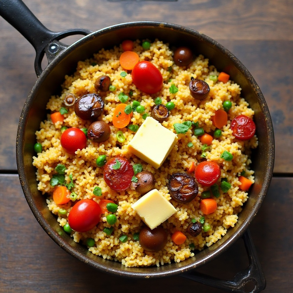 Receta de Paella de Queso Bumthang con Vegetales Asados