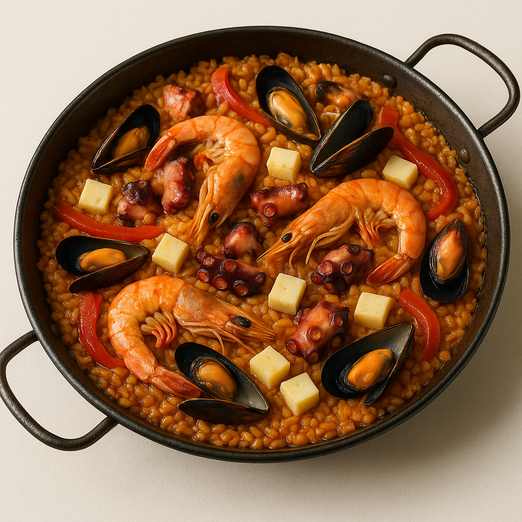 Vejer de la Frontera es conocida por su queso Payoyo, un queso curado tradicional con sabores intensos. En este plato, el queso Payoyo se integra de manera innovadora en una paella, creando un contraste sabroso que realza los sabores marinos característicos de esta región. La receta es ideal para aquellos que buscan fusionar la tradición culinaria de Vejer con ingredientes locales y modernos.