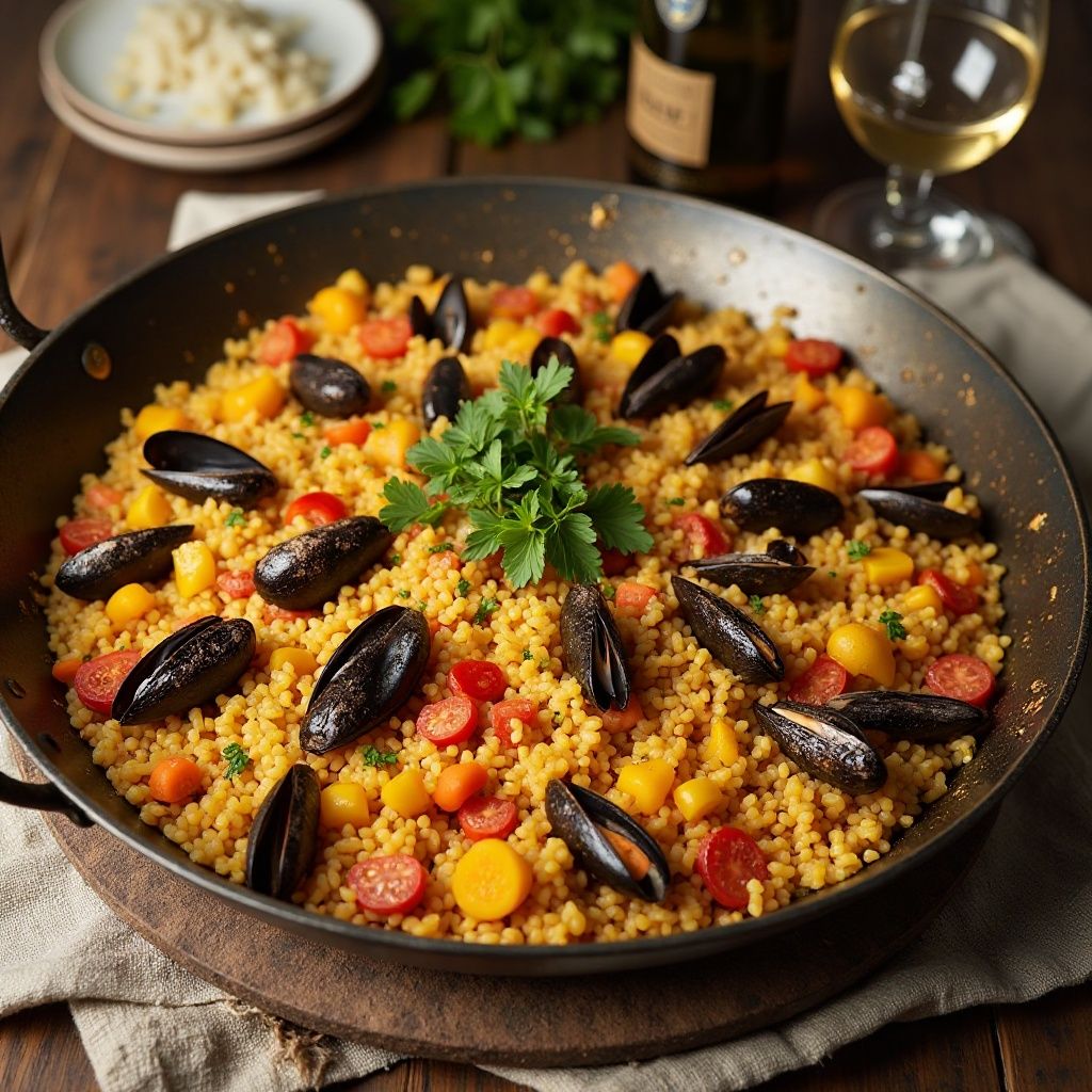 La paella es un símbolo culinario de Valencia, España. Originalmente un plato para campesinos, ha evolucionado hasta convertirse en un banquete sofisticado. El uso del Cava Añejo como condimento en una paella no es tradicional, pero refleja la capacidad de innovación y adaptación de la gastronomía española. Es una excelente manera de experimentar con los sabores tradicionales en un contexto moderno y elegante.