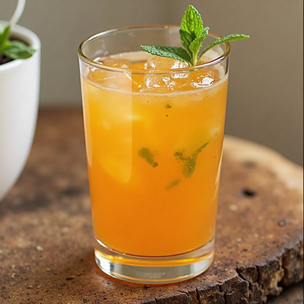 - Vierte en un vaso grande, decora con hojas de menta fresca y si lo deseas, añade hielo picado para una experiencia refrescante.