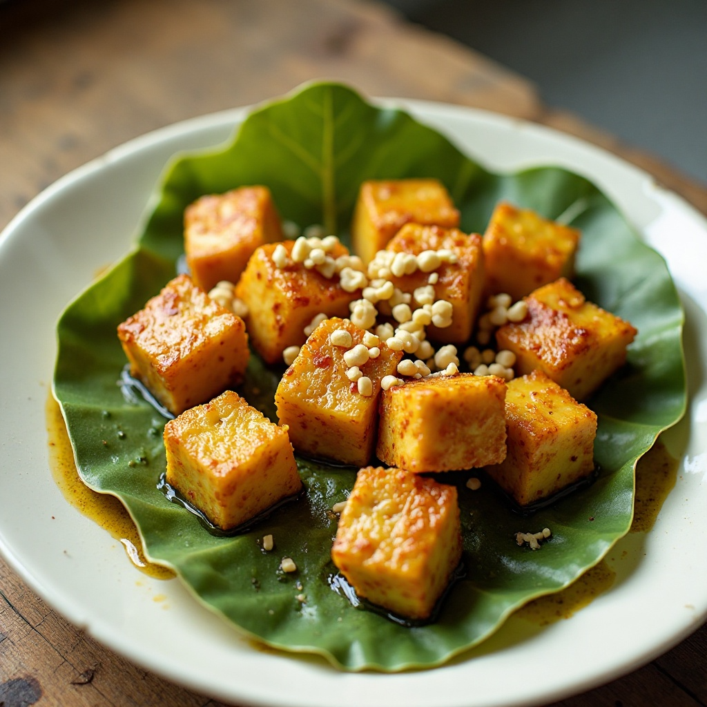 El palusami es un plato tradicional samoano hecho con hojas de taro cocidas y aderezadas con leche de coco. En esta versión creativa, le hemos dado un giro utilizando tofu en lugar del típico relleno de carne para hacer una opción más vegetariana y saludable. Este plato captura el espíritu isleño con su sabor dulce y salado, ideal para cualquier comida principal.