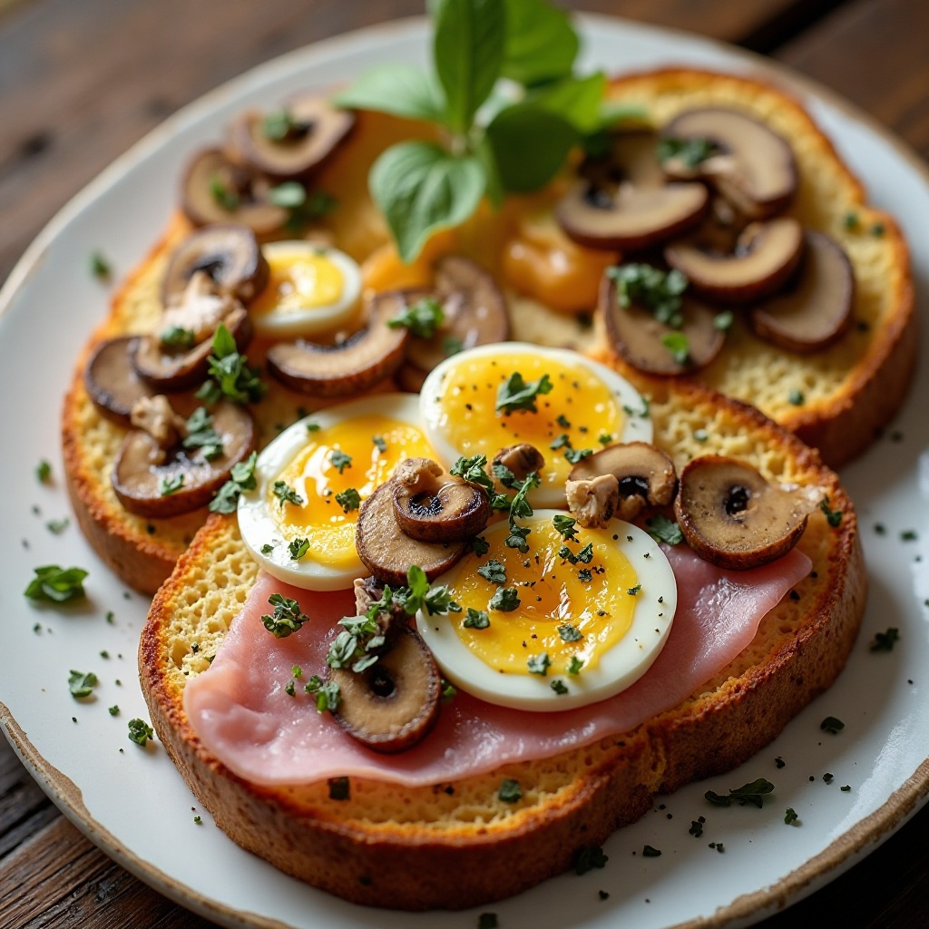 El pan de centeno es una opción saludable debido a su contenido de fibra y propiedades antioxidantes. El jamón y los champiñones añaden proteínas magras y nutrientes esenciales. Para un plato aún más saludable, considera reducir la cantidad de sal y optar por champiñones en su lugar.
