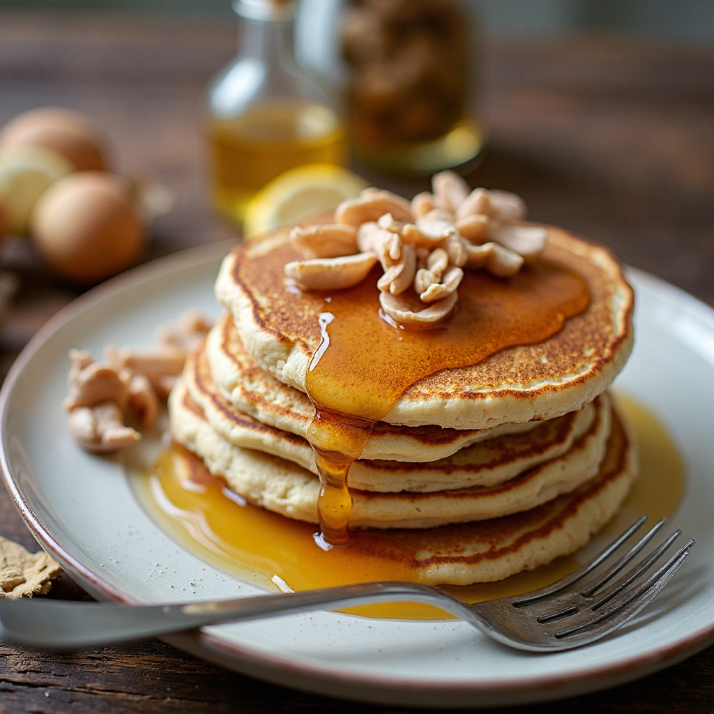 Esta versión de pancakes está enriquecida con harina de trigo integral, lo que proporciona fibra y nutrientes adicionales. El uso de leche de almendras la hace más ligera y adecuada para dietas sin lácteos. El maple syrup, aunque dulce, ofrece beneficios por su contenido de antioxidantes. Asegúrate de equilibrar esta receta con otras opciones saludables en tu dieta.