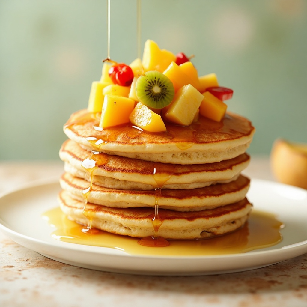 Receta de Pancakes Maple Syrup y Frutas Tropicales