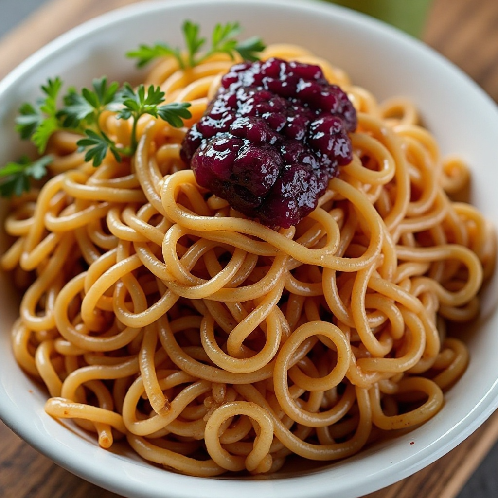 Esta receta es rica en proteínas gracias a la carne utilizada y ofrece un toque dulce de la Ube jam, que es conocida por ser baja en calorías. El pancit gordo en sí contiene carbohidratos complejos que proporcionan energía duradera. Para adaptarla a necesidades específicas, puedes reducir el azúcar añadiendo menos salsa de tomate o utilizar una versión baja en sal.