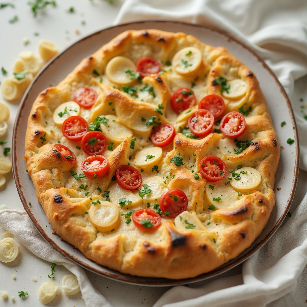 El paneto, originario de la región italiana de Emilia-Romaña, es un tipo de pan casero que se caracteriza por su textura suave y su aroma a levadura. Este plato combina perfectamente con pollo a la Fiorentina, una versión tradicional de este plato, que incluye ingredientes frescos y locales típicos de la región de Italia. Ideal para una comida completa, este conjunto de platos destaca por su sencillez y sabor auténtico.