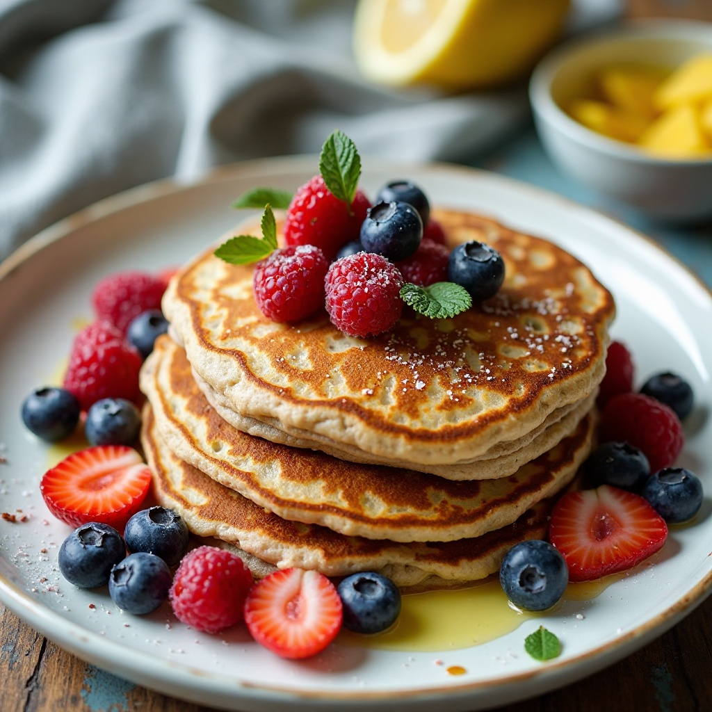El sarraceno es una fuente rica en fibra, proteínas vegetales y antioxidantes. Los panqueques hechos con sarraceno son bajos en grasa y azúcar, ofreciendo una alternativa saludable a los tradicionales panqueques. La adición de frutas del bosque aumenta el contenido de vitaminas C y antioxidantes, lo que contribuye a un desayuno equilibrado y nutritivo.
