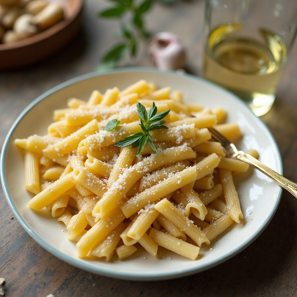 Esta receta es una interpretación moderna de un clásico italiano, donde el vino Falanghina del Sannio, un blanco italiano versátil y lleno de carácter, se utiliza para realzar los sabores de una pasta tradicional aliñada con ajo. Es ideal para compartir en una cena tranquila o disfrutar en familia.