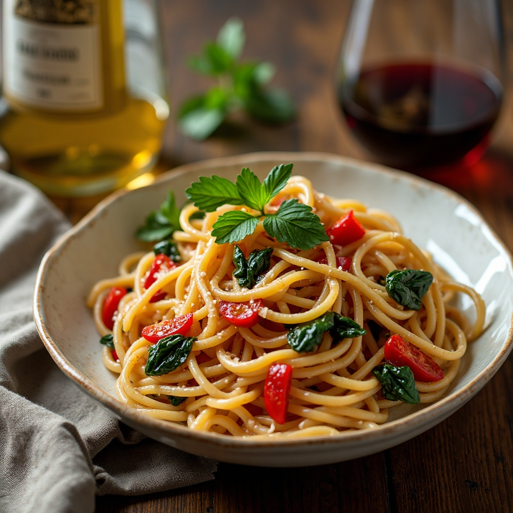 La región italiana del Molise es conocida por su vino Aglianico, un robusto tinto que se cultiva principalmente en las zonas montañosas. Esta receta aprovecha la esencia de este vino para crear una pasta aromática y llena de sabor, complementada con verduras típicas de Venafro y el resto de la región, ofreciendo un plato reconfortante y lleno de historia culinaria.