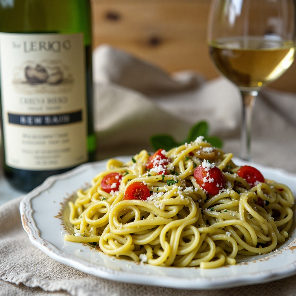 El vino de Liguria es famoso por su sabor distintivo, y esta pasta al pesto con ese vino le añade un toque especial. Originaria de la región italiana de Liguria, esta receta es ideal para una cena relajante, ofreciendo una combinación sabrosa de sabores frescos y robustos.
