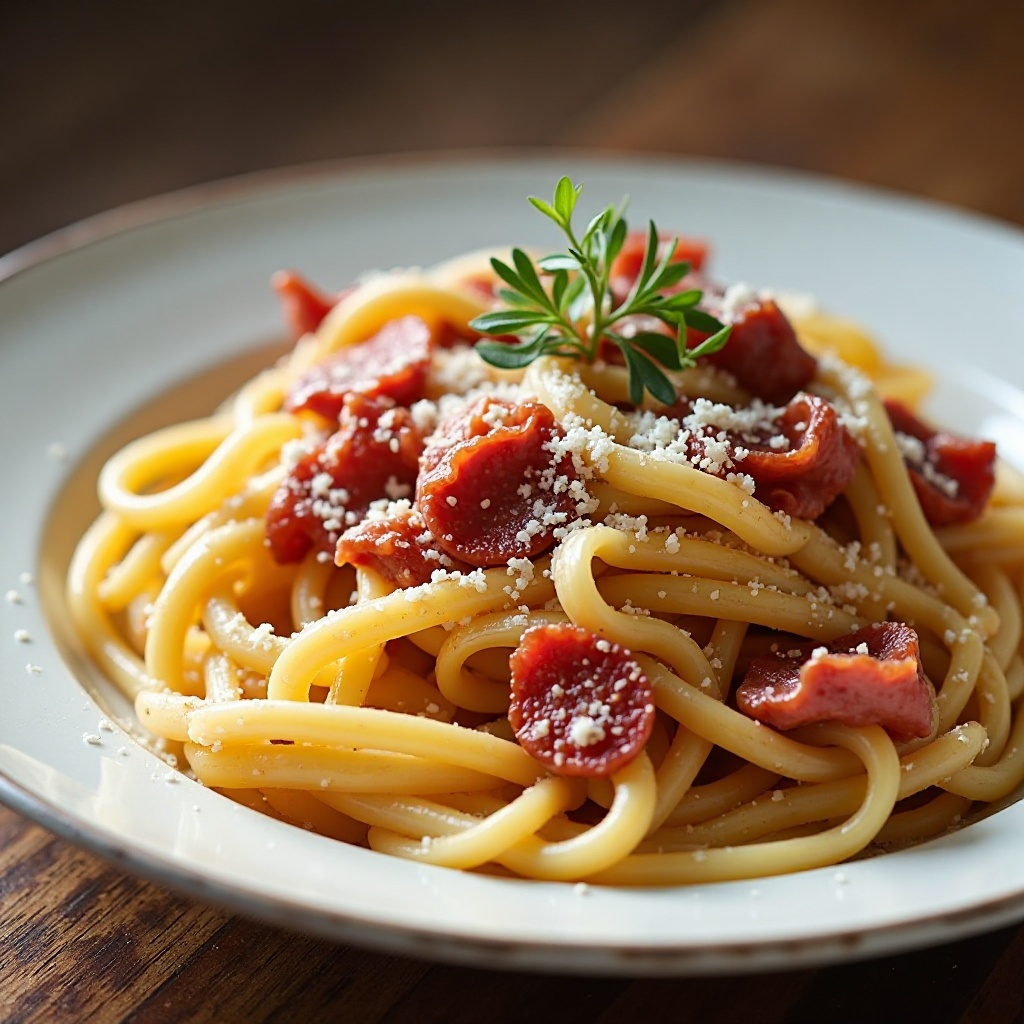 El salame di Fabriano es un emblema culinario de Recanati, una pequeña ciudad en Italia conocida por su tradición del salame. Esta receta es una adaptación moderna que celebra la riqueza de sabor del salame italiano, permitiendo al comensal disfrutar de los matices del producto artesanal directamente en un plato de pasta. Es un ejemplo de cómo los ingredientes locales y tradicionales pueden ser reinterpretados para ofrecer experiencias gastronómicas contemporáneas que mantienen vivas las tradiciones culinarias italianas.