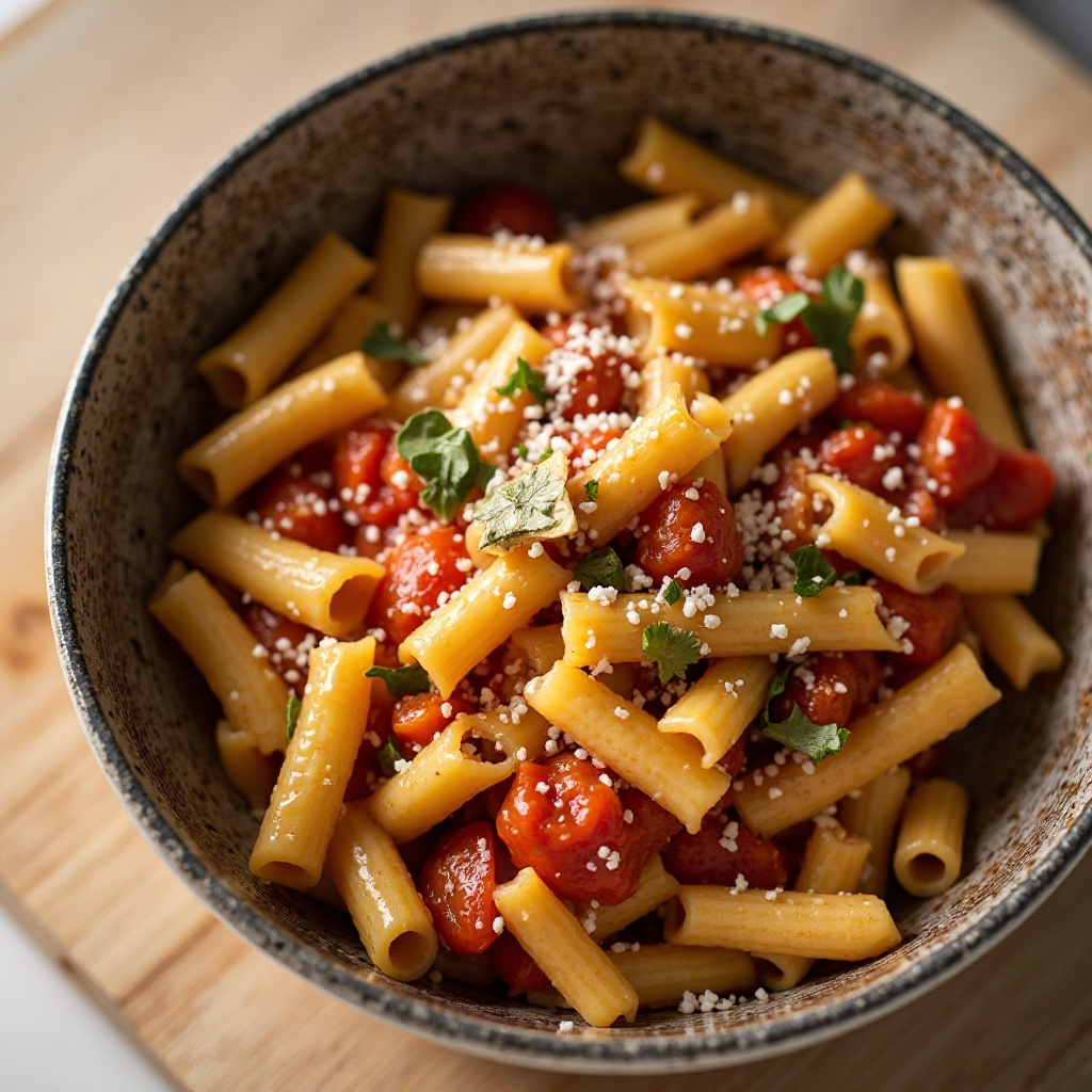 La pasta alla Beneventana es un plato tradicional de la región Campania, Italia. En esta versión especial, se incorpora el Aglianico del Taburno, un vino de cepas antiguas que le da al plato una profundidad y sabor únicos.