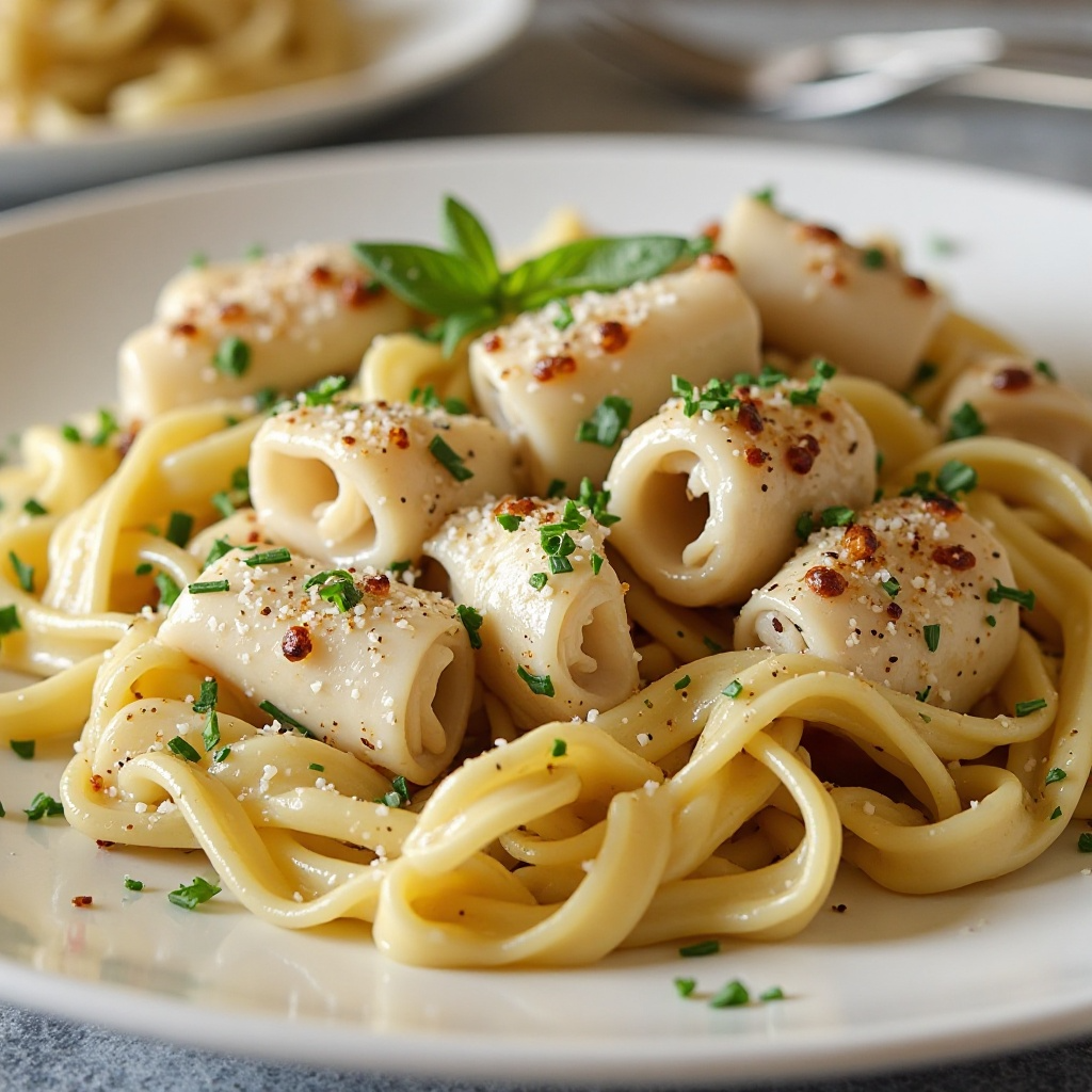 - Vierte la salsa sobre los fideos y mezcla bien para que cada porción esté cubierta. Agrega los involtini y mezcla nuevamente para que los sabores se integren.