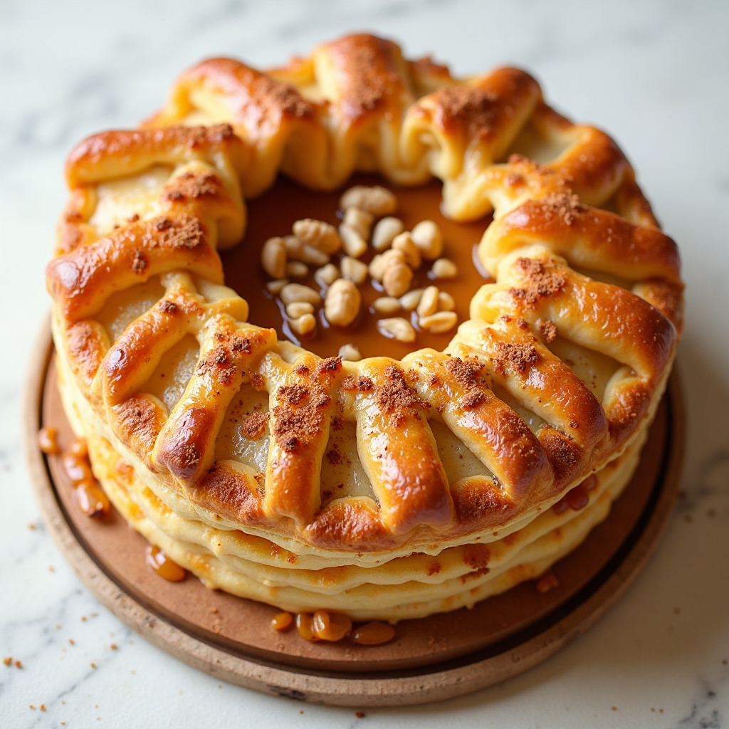 El pastel de Kiev es un clásico de la repostería ucraniana, famoso por su generoso relleno de carne, queso, y a menudo, miel. Esta variante destaca con una mezcla de manzanas caramelizadas, miel y nueces, ofreciendo un contraste entre dulzor y textura crujiente. Es ideal para ocasiones especiales o simplemente para disfrutar de un postre excepcional.