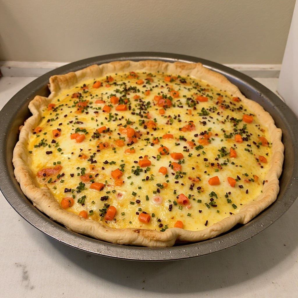 - Coloca el resto de la mezcla sobre la primera capa para completar el pastel. Puedes decorar con hierbas frescas o semillas de mostaza antes de hornear.