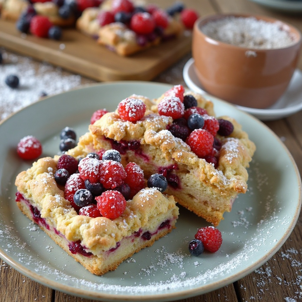 Este pastelito es una delicia ligera y saludable, gracias a las bayas del bosque, que son ricas en antioxidantes. La harina de trigo proporciona energía y fibra, mientras que el extracto de vainilla añade un toque delicioso sin demasiadas calorías. Para una versión más baja en azúcar, considera reducir la cantidad de azúcar o reemplazarlo con edulcorantes más naturales.