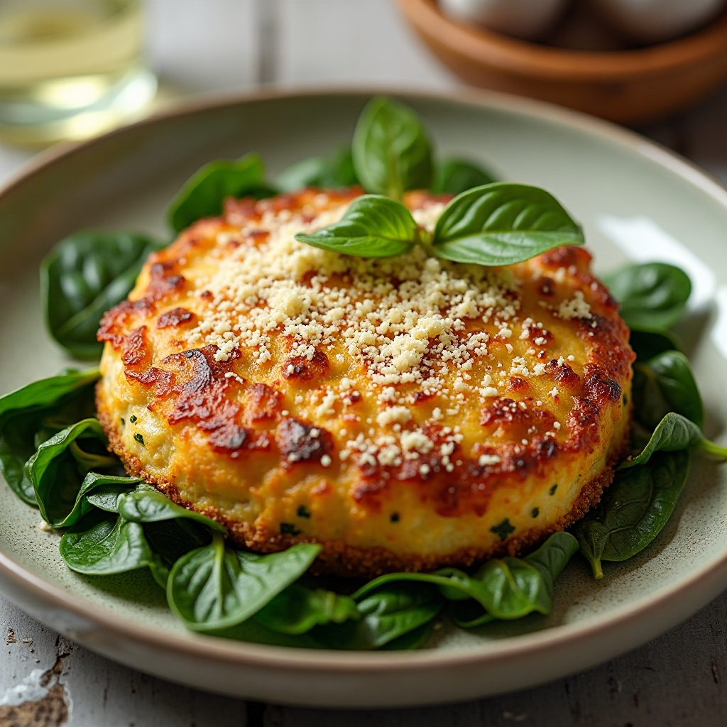 7. Sirve la pasta de pescado con una capa generosa de espinacas y un toque extra de parmesano por encima, decorando con las hojas reservadas de espinacas frescas.
