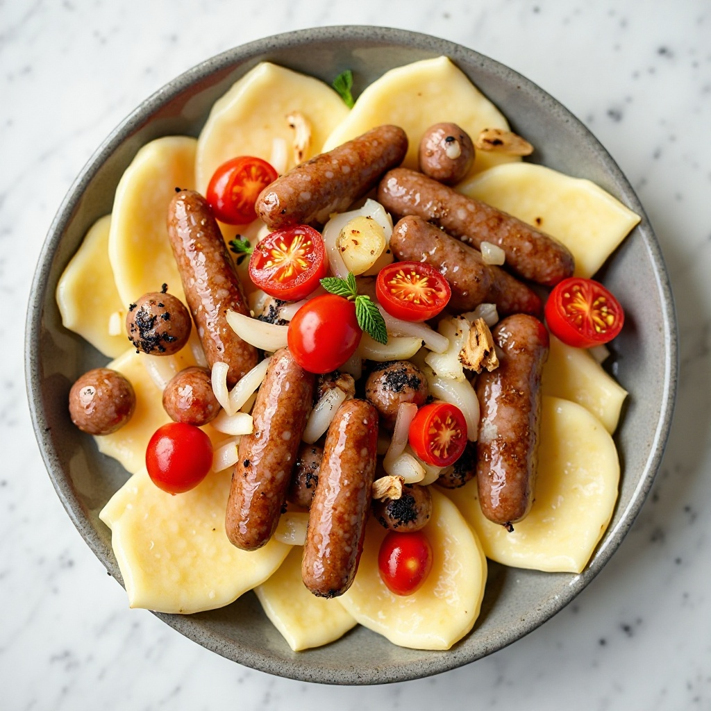 Esta receta es ideal para un almuerzo o cena informal en Andorra, utilizando ingredientes locales como patatas, conchillas y embutidos típicos de la región. El plato combina sabores tradicionales con un toque contemporáneo, perfecto para compartir con amigos y familiares.