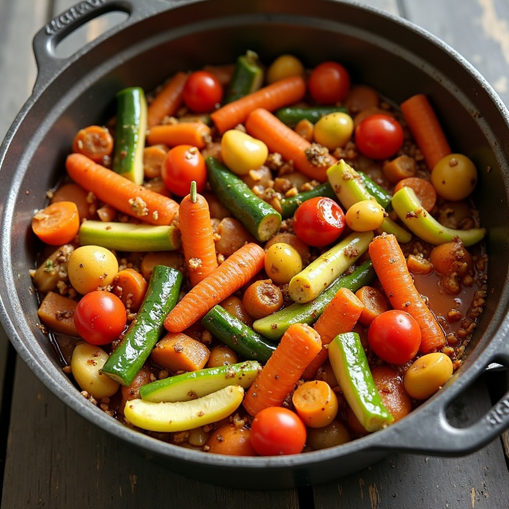 El peka es un método tradicional de cocción en Lesoto que no solo preserva los sabores naturales de los alimentos, sino que también es una forma comunitaria de cocinar. Aunque tradicionalmente se cocinan carnes y verduras, esta receta adaptada muestra cómo se pueden disfrutar las verduras con la misma esencia del peka. Es un reflejo de la rica cultura culinaria de Lesoto, donde los métodos de cocción y los ingredientes locales se combinan para crear platos únicos.