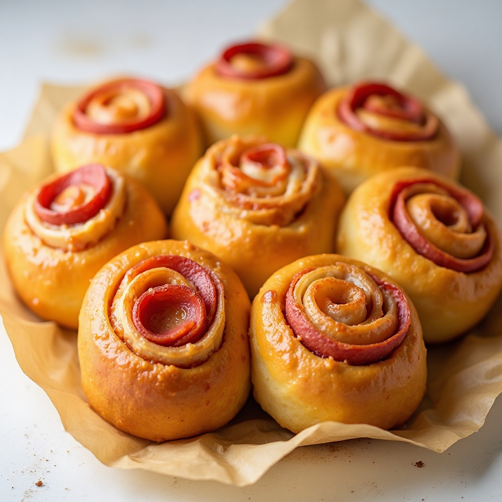 - Cierra cuidadosamente los rolls, asegurándote de que el pepperoni esté completamente contenido. Corta un pequeño hueco en la parte superior de cada rollo para permitir el flujo de vapor durante la cocción.
