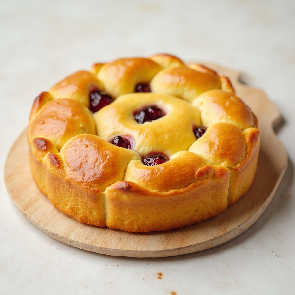- Coloca la masa en una bandeja para horno previamente engrasada. Forma un disco plano y uniforme con un borde ligeramente elevado para que el pastel no se expanda durante la cocción.
