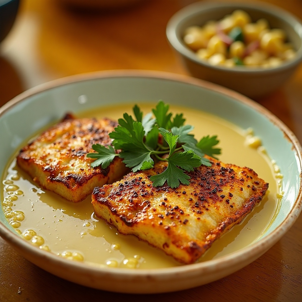 4. En la misma sartén con el aceite restante (si hay), agrega los filetes de pescado. Cocina hasta que estén dorados y cocidos por dentro, aproximadamente 3-4 minutos por lado para pescados más delgados.