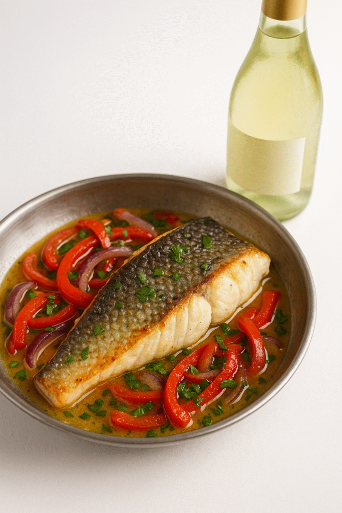 Este plato es una opción saludable gracias al pescado, rico en proteínas y ácidos grasos omega-3, y los vegetales aportan fibra y antioxidantes. El uso moderado del vino añade sabor sin sobrecargar las calorías.