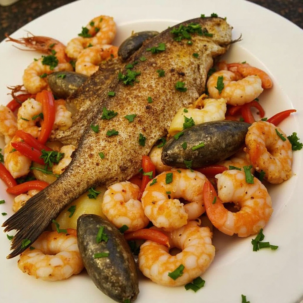 Isla Cubagua, un pequeño islote frente a las costas venezolanas del estado Nueva Esparta, es conocida por sus aguas cristalinas y la abundancia de mariscos frescos. Aquí te presento una receta que celebra su rica tradición culinaria: Pescado Asado con Mariscos, un plato lleno de sabor y color que captura la esencia de este paraíso marino.