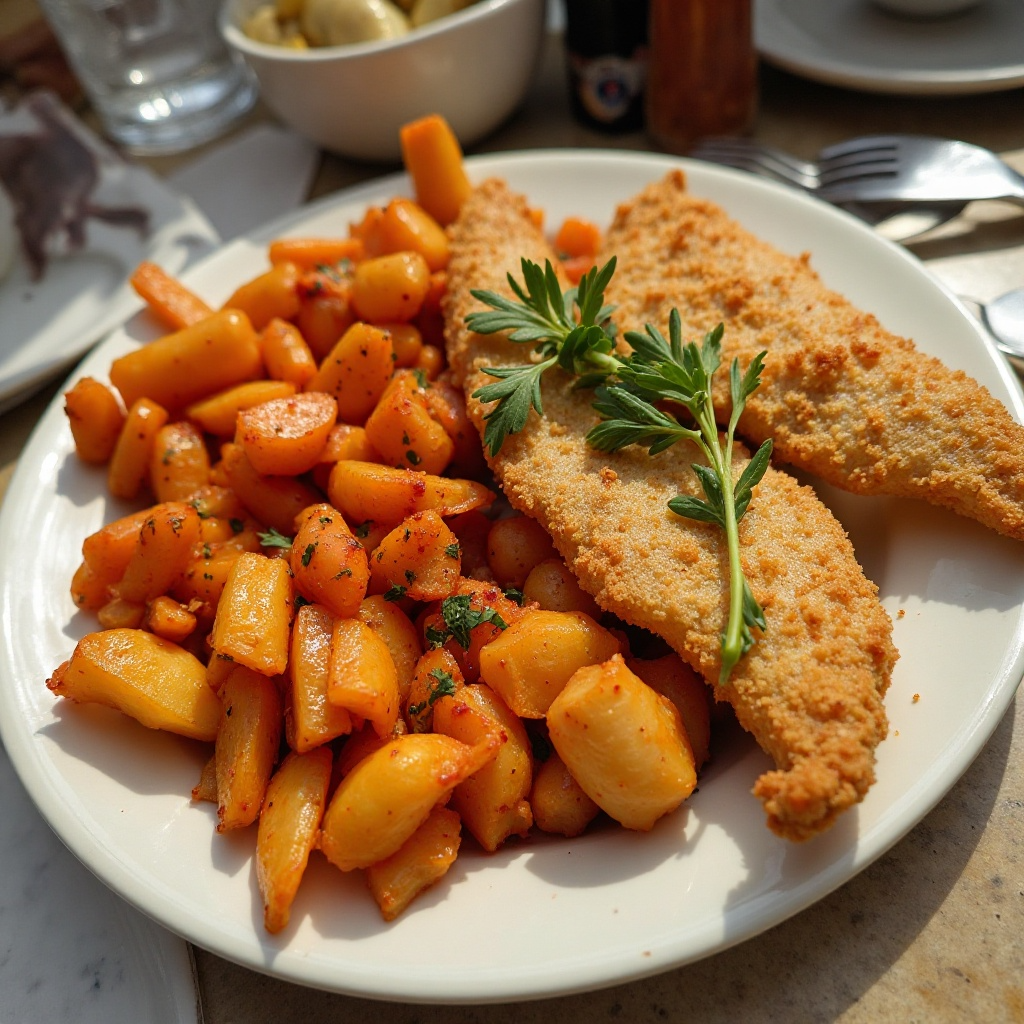 Receta de Pescado Frito con Patatas Bravas en Benalmádena, España
