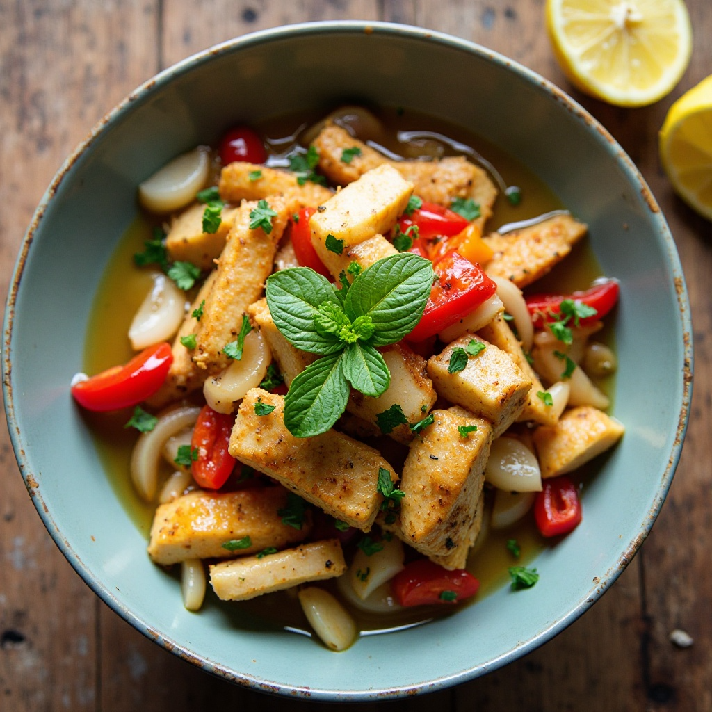 El pescado salteado con coco y limón es un plato fresco y vibrante que captura la esencia de las Islas Salomón. En Honiara, la capital de las Islas Salomón, este plato se prepara con pescado fresco de la región y especias locales para crear un sabor auténtico y exótico. Ideal como entrada o plato principal, especialmente en los días cálidos.