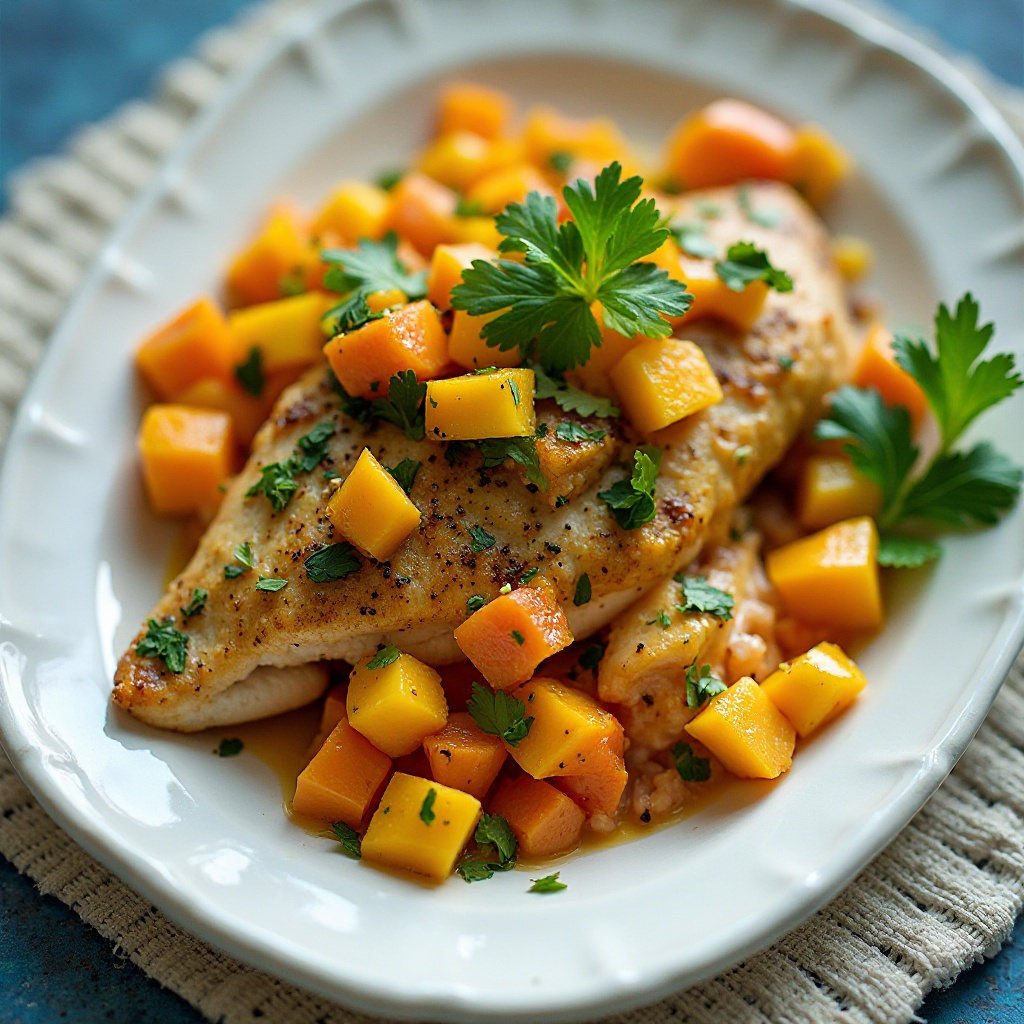 Receta de Pescado Tropical Marshallés con Mango y Papaya
