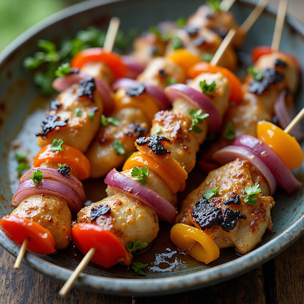 5. Una vez las brochetas estén listas, retíralas de la parrilla y colócalas en un plato. Sirve la salsa de mostaza caramelizada por encima, disfrutando del contraste de sabores entre el pheasant suave y la salsa dulce y ácida.