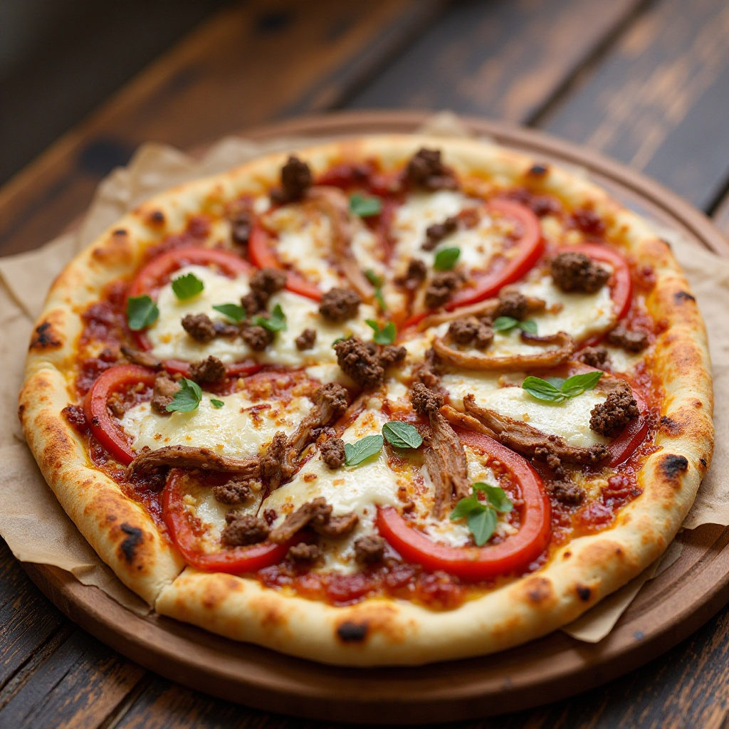 El Philly Cheesesteak Pizza es una fusión innovadora inspirada en la cultura culinaria de Filadelfia, un importante centro de cultura estadounidense. La ciudad es famosa por su queso provolone y sus delis que ofrecen el Philly Cheesesteak, un clásico de la carne asada con cebolla y queso. Esta receta celebra esa herencia, transformando un plato icónico en una pizza, una forma popular de comer en todo Estados Unidos. Sirve esta pizza como plato principal, ideal para compartir o disfrutar en familia.