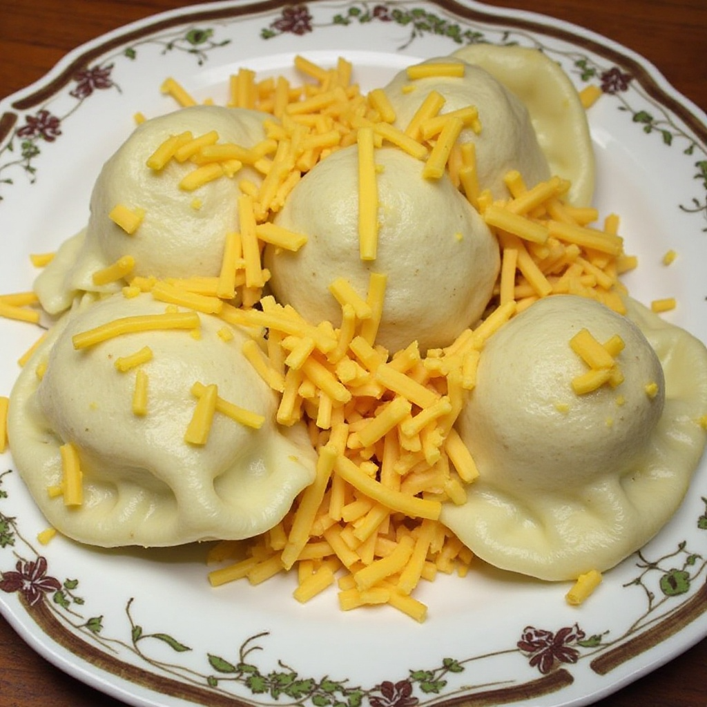 - Sirve los pierogis calientes con un poco de mantequilla derretida y espolvoreados con un poco de queso cheddar extra rallado si se desea.