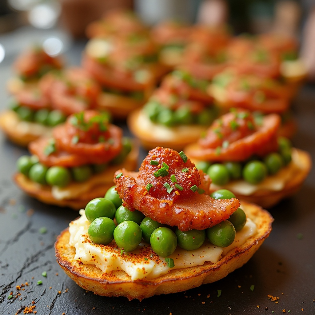 Esta receta de pintxos incluye ingredientes saludables como los guisantes, ricos en fibra y nutrientes, y las patatas bravas, que son una excelente fuente de energía. Para una versión más ligera, puedes optar por usar patatas en rodajas finas y reducir la cantidad de aceite de oliva utilizada en la fritura de las patatas. Recuerda controlar las porciones para mantener un equilibrio nutricional.