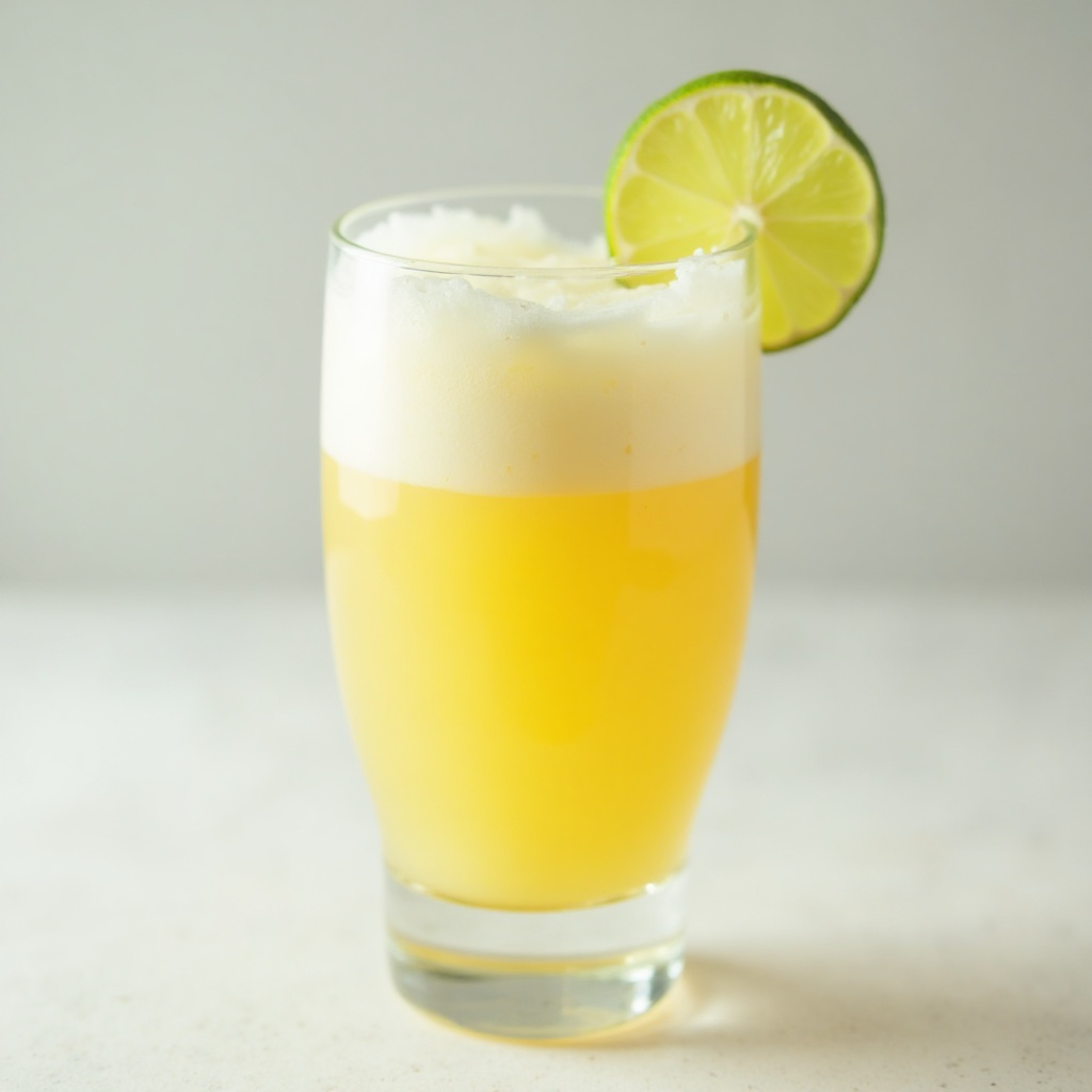 1. En un vaso, bate el jugo de lima y la clara de huevo hasta que esté espumoso y con una textura espesa.