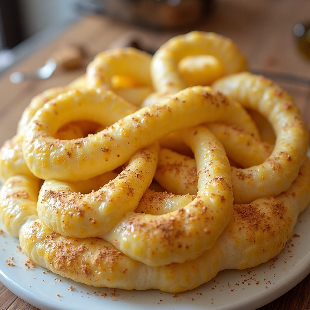 - Divide la masa en pequeñas porciones y haz bucles o trenzas con cada una, colocándolas en una bandeja forrada con papel pergamino.