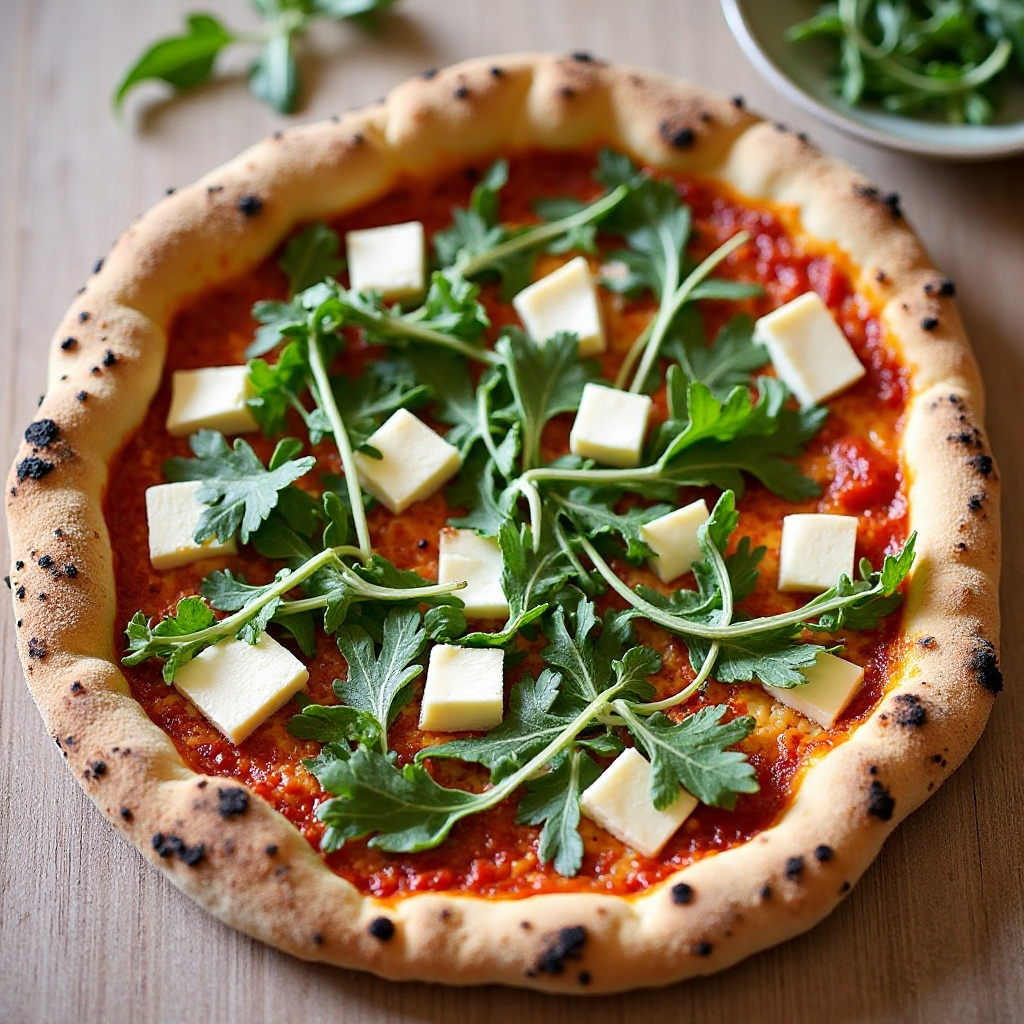Esta pizza es baja en grasa y rica en antioxidantes gracias a los tomates secos y la rúcula. El queso pecorino romano, conocido por su bajo contenido de grasa, aporta un sabor intenso sin demasiadas calorías. Para una versión más ligera, considera reducir la cantidad de aceite de oliva o sustituir el pecorino por un queso fresco.