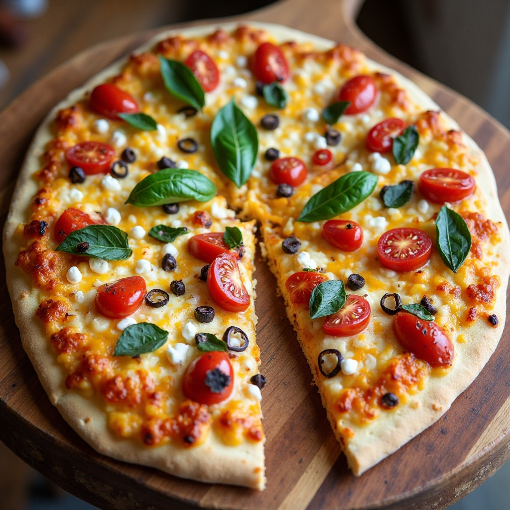 Esta pizza ofrece una opción saludable con ingredientes frescos como el queso mozzarella, que es bajo en grasa en comparación con otros tipos, y los pimientos verdes asados, ricos en antioxidantes. La cebolla caramelizada agrega un toque dulce sin añadir calorías adicionales. Sin embargo, ten en cuenta que el queso cheddar puede aumentar la ingesta de calorías y grasas.