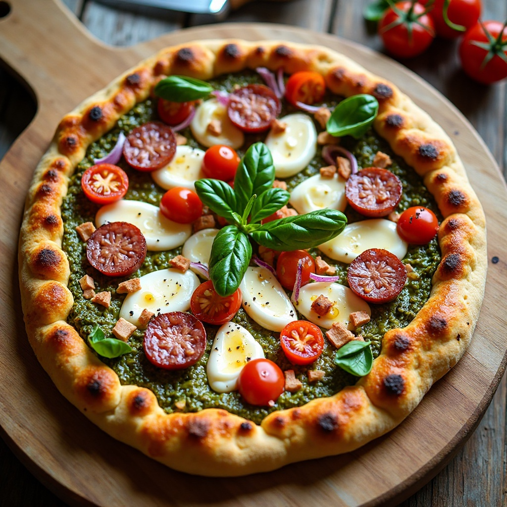 La pizza con Nduja y pesto ofrece una buena combinación de sabores frescos y picantes. La mozzarella es rica en proteínas, mientras que el pesto proporciona antioxidantes gracias a sus hojas verdes. Para adaptar esta receta a necesidades dietéticas, se pueden reducir las cantidades de queso o elegir opciones sin lactosa para aquellos con intolerancia.