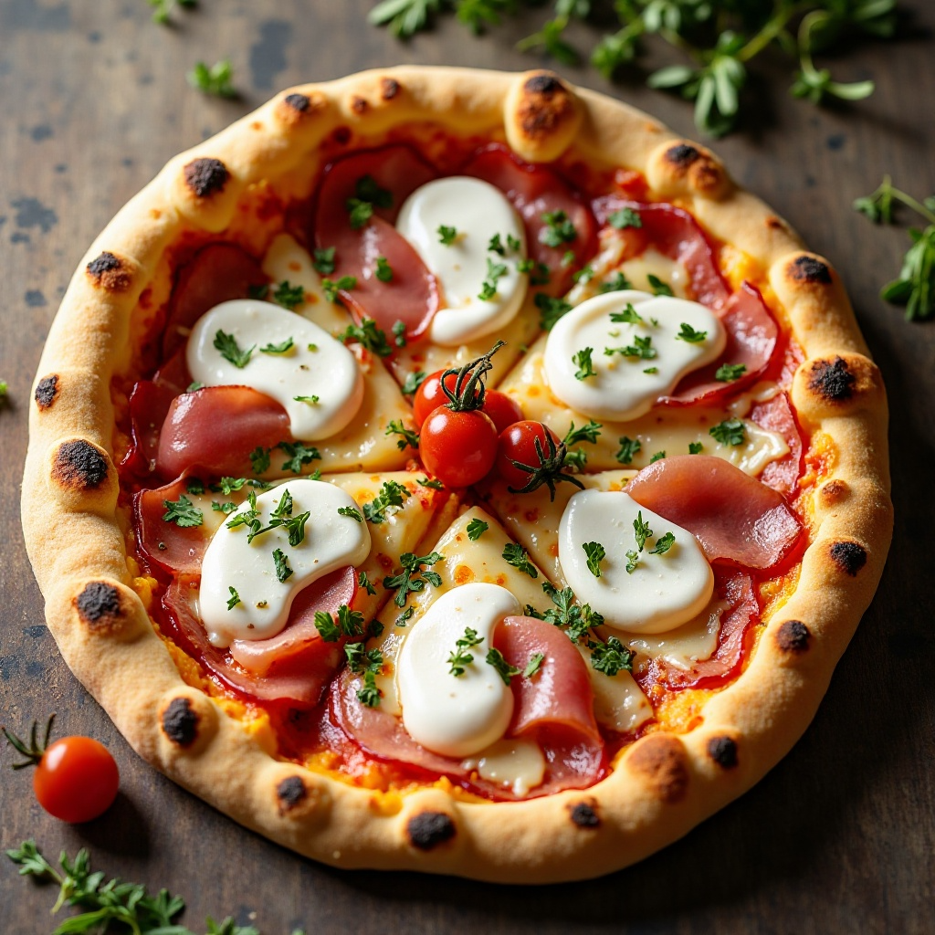 Este plato es un deleite culinario con beneficios para la salud gracias a sus ingredientes frescos y naturales. La mozzarella aporta proteínas y calcio, el jamón crudo es rico en proteínas magras y el orégano proporciona antioxidantes. Para una versión más ligera, puedes optar por mozzarella de búfala o reducir la cantidad de carne.