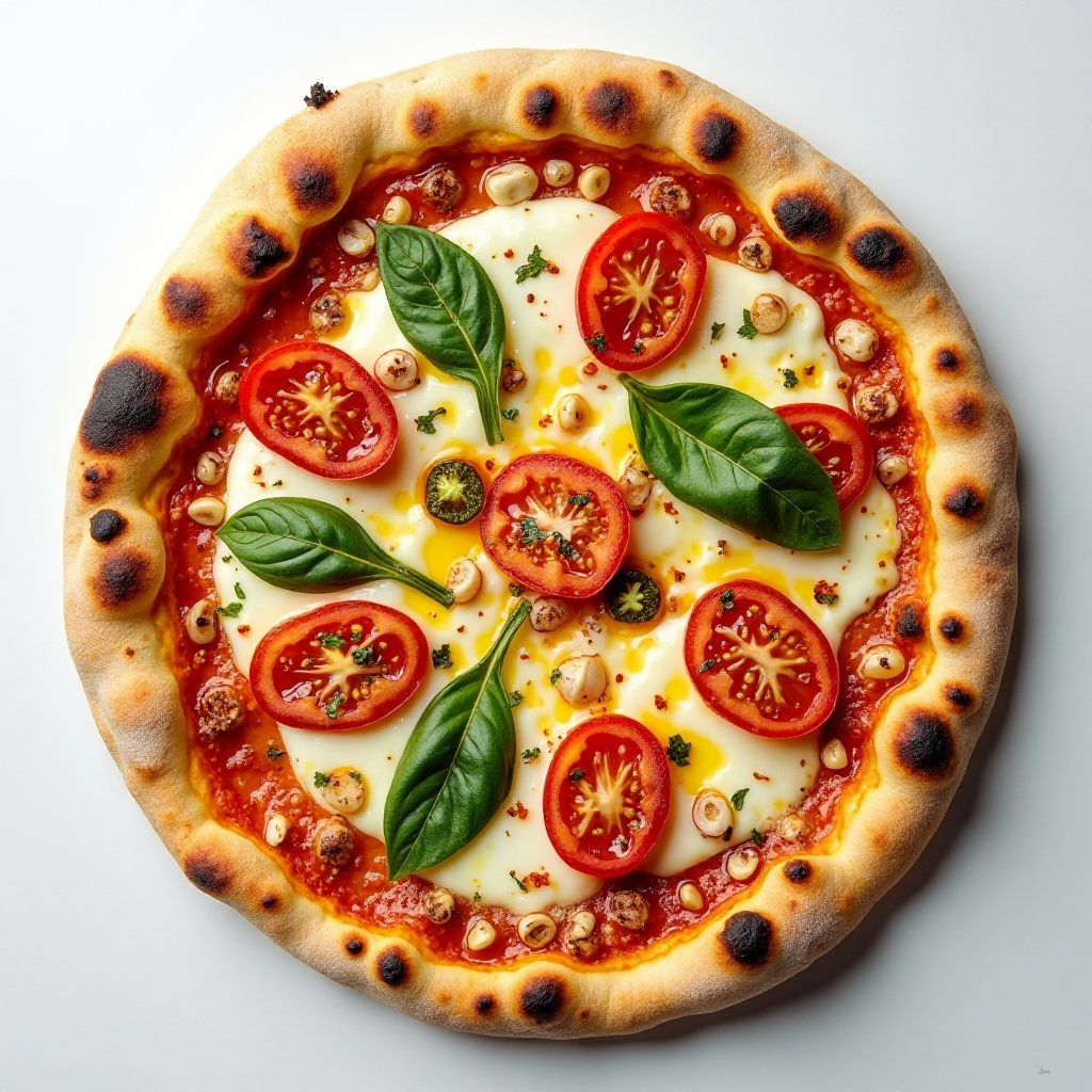 Esta pizza utiliza ingredientes frescos y naturales, como tomates cherry y albahaca, que son ricos en vitaminas y antioxidantes. La mozzarella, aunque con contenido graso, es un producto lácteo esencial. Si buscas una versión más ligera, podrías reducir la cantidad de mozzarella o utilizar una mozzarella baja en grasa.