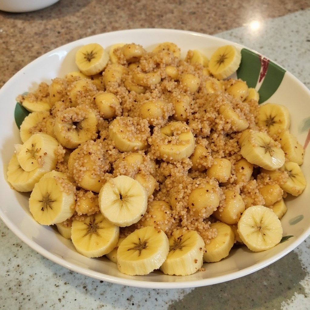 El platano es un ingrediente básico en la cocina de muchos países africanos, incluyendo Burundi. En el contexto de Gitega, una región conocida por su producción de plátanos, esta receta captura la esencia de la cocina local, ofreciendo un plato dulce y satisfactorio que se disfruta tanto por su simplicidad como por su sabor.