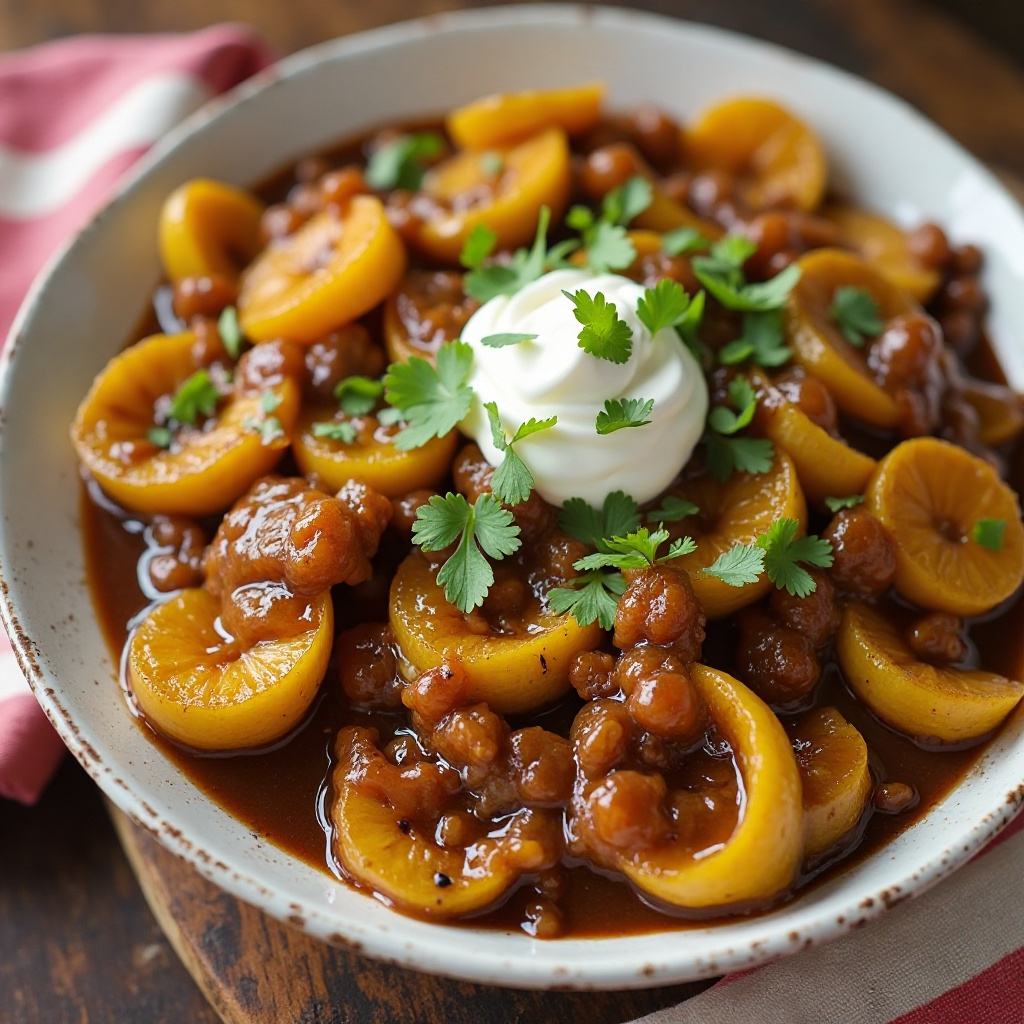 El plátano es rico en potasio, vitaminas B6 y C, y fibra, lo que contribuye a la salud cardiovascular y digestiva. El mole, aunque contiene especias y chocolate, debe consumirse con moderación debido a su contenido en grasas y calorías. La receta aquí proporcionada se puede ajustar para ser más ligera, por ejemplo, usando menos crema agria o leche.