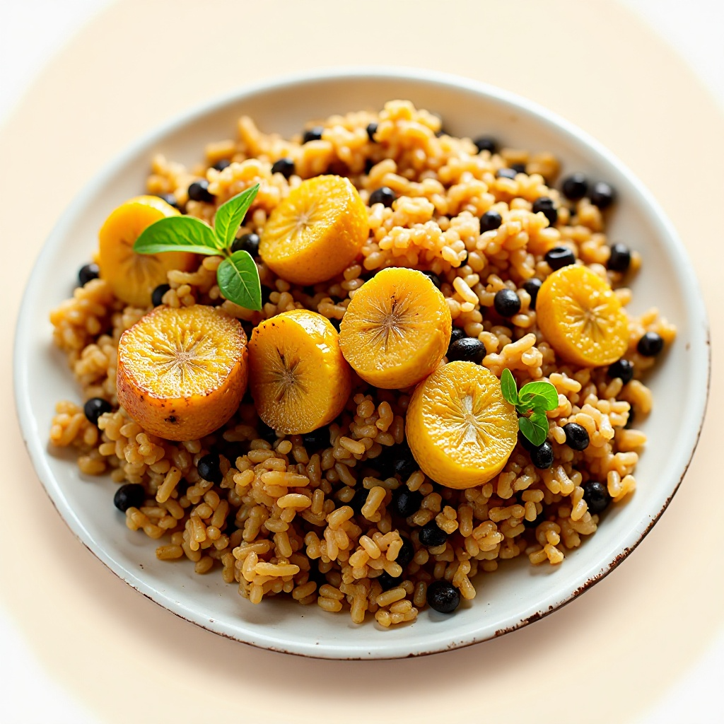Este plato es una versión tropical y reconfortante del clásico mofongo, adaptado a las preferencias y los ingredientes disponibles en la comunidad cubana de Little Havana en Estados Unidos. Los plátanos maduros fritos y el arroz con frijoles negros ofrecen una comida sustanciosa, ideal para compartir en familia o disfrutar de un almuerzo sabroso.