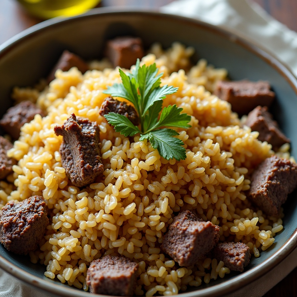 El plov es un plato tradicional y muy apreciado en Kirguistán, conocido por su sabor rico y complejo. Añadir kumis, una bebida fermentada a base de leche de cabra o yak, le da un toque único y refrescante. Esta receta es ideal para aquellos que disfrutan de sabores fuertes y texturas variadas.