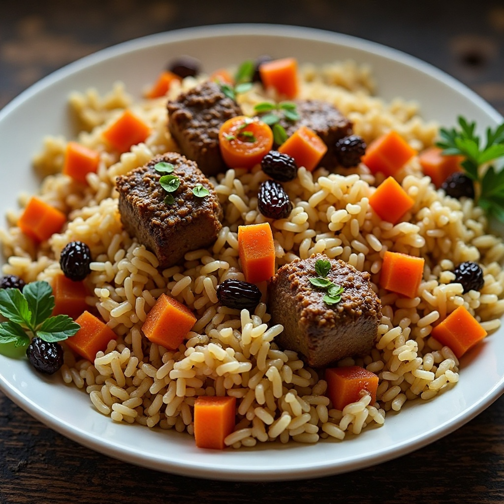 El plov es un plato tradicional de Kazajistán, conocido por su abundancia y profundidad de sabor. Este plato se sirve durante festividades y ocasiones especiales. En la región de Atyrau, que tiene una rica tradición agrícola, incorporan ingredientes locales como el Subezh (Shubat), una variedad de cebolla típica de Kazajistán. Esta receta es un deleite para los sentidos, con su mezcla única de sabores.